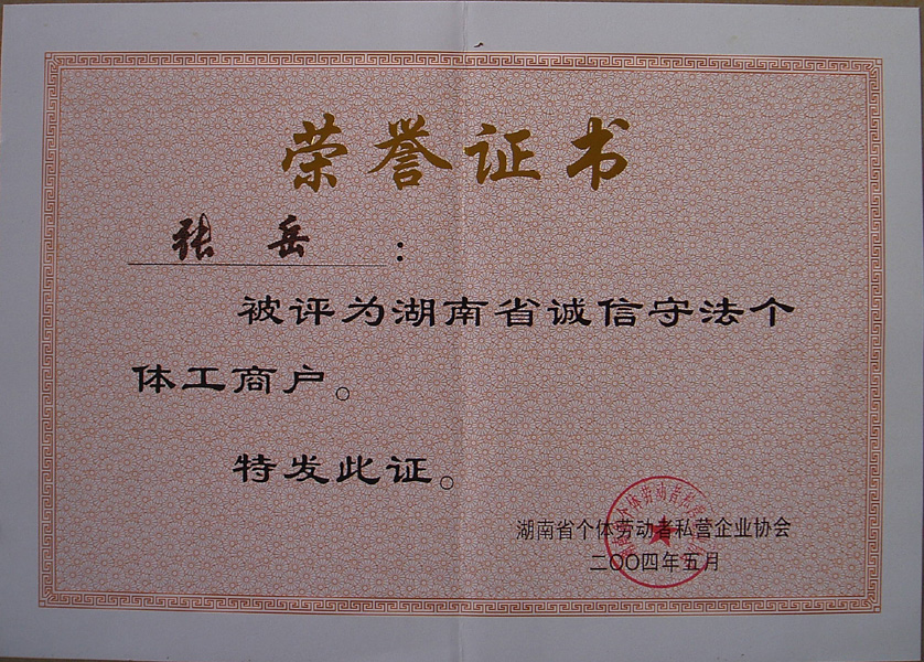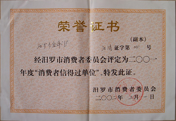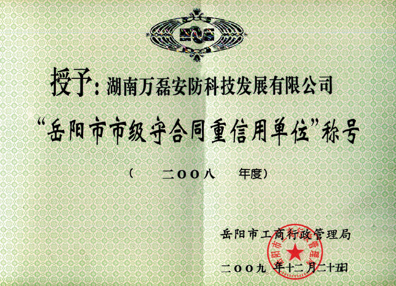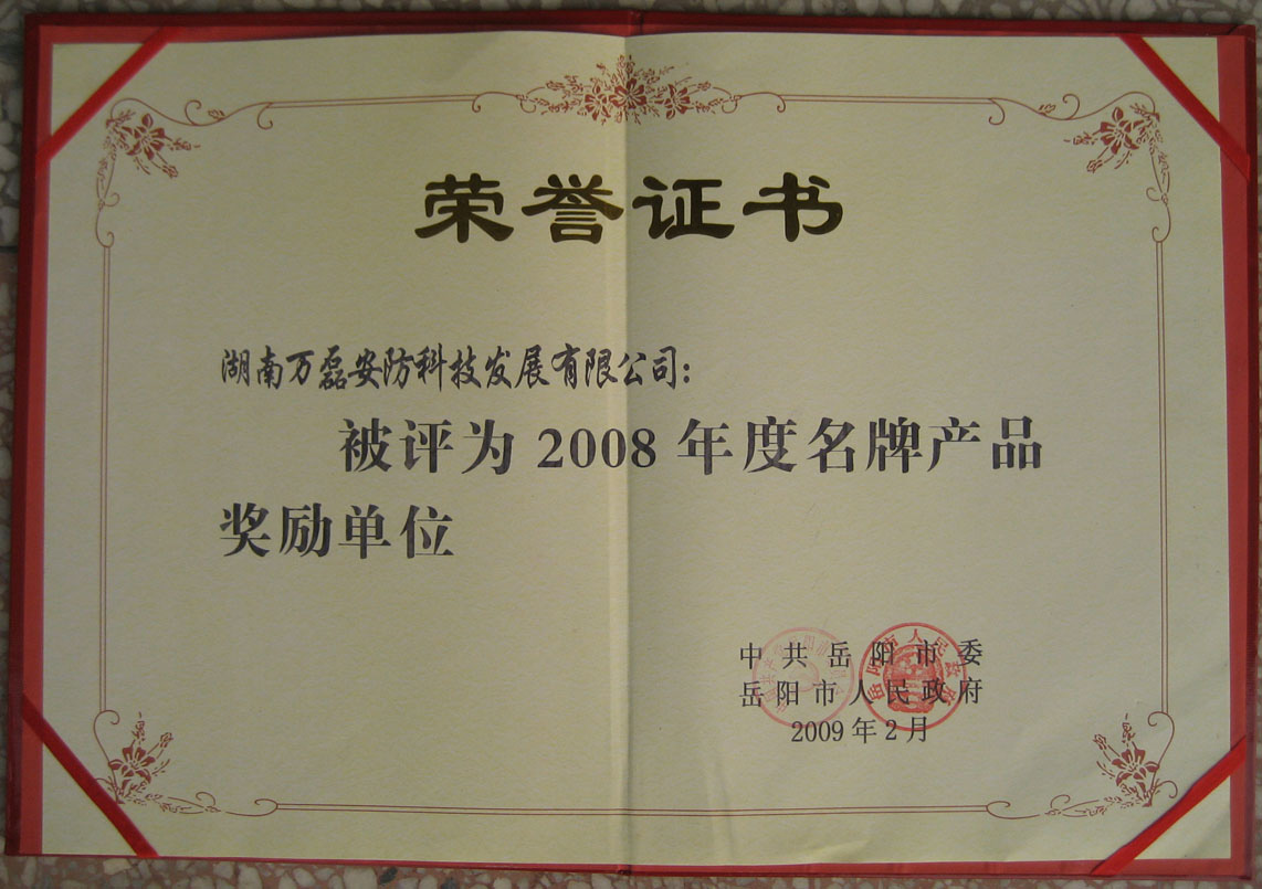 2008年岳陽市名牌產(chǎn)品榮譽證書 |