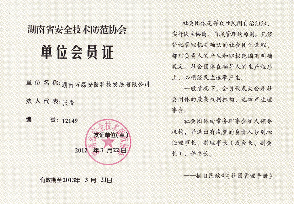 湖南安防協(xié)會(huì)會(huì)員證 |