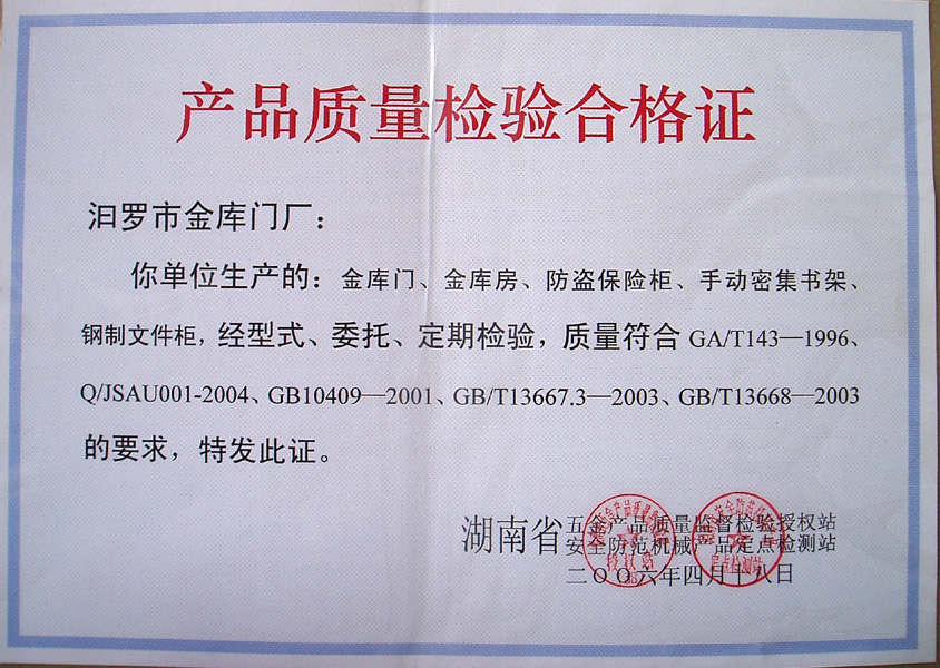 產(chǎn)品質(zhì)量檢驗(yàn)合格證 |