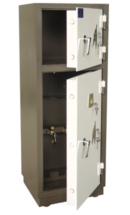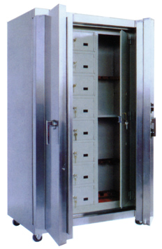 萬(wàn)磊牌防暴槍柜系列采用優(yōu)質(zhì)鋼板或不銹鋼板制作而成,堅(jiān)固可靠,防破壞能力極高。柜體為上下兩層,上層放子彈,下層放槍,下層放槍的位置還可配備一把專(zhuān)用槍鎖, 達(dá)到槍彈分離,一槍一鎖的槍支管理要求。柜門(mén)一邊裝有圓柱形活動(dòng)門(mén)閂,當(dāng)門(mén)關(guān)上后,活動(dòng)門(mén)閂與門(mén)框互相緊扣;門(mén)的另一邊位固定門(mén)閂,固定門(mén)閂也與門(mén)框緊扣,如門(mén)鉸鏈?zhǔn)艿狡茐,門(mén)也不能開(kāi)啟。柜門(mén)配備美國(guó)制造并通過(guò)“UL”認(rèn)證的機(jī)械密碼鎖,鎖體或鎖舌即使被強(qiáng)行拆毀,內(nèi)部的鎖死機(jī)構(gòu)會(huì)立即將門(mén)門(mén)鎖死。本產(chǎn)品適用于銀行及公安部門(mén)存放槍支、子彈。